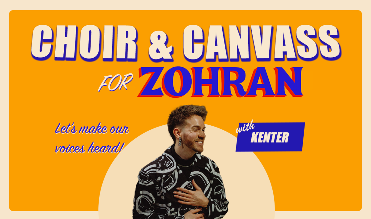 Let’s make our voices heard—through song and collective action! Join us for Choir & Canvass: an event to sing in community and canvass for our next Mayor, Zohran Mamdani.